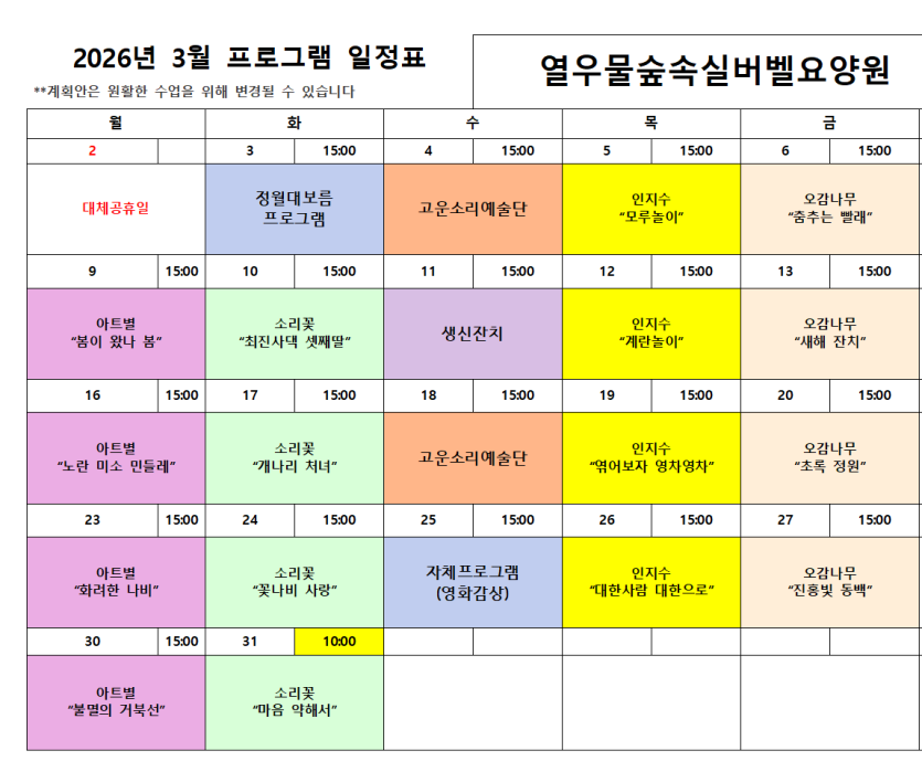 2026년 3월 프로그램일정표